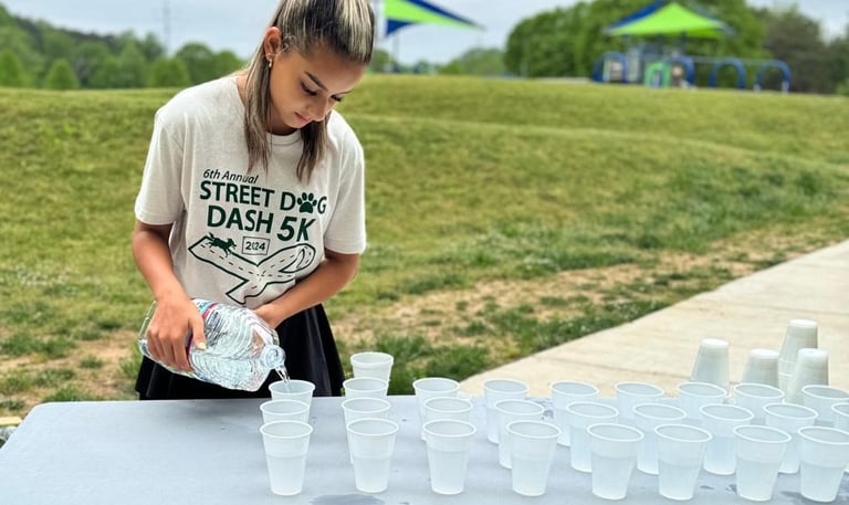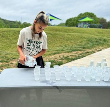 On April 27, 2024 Taysha Souza had the opportunity to volunteer at the 6th annual street dog dash 5k. Taysha was a great volunteer helping throughout the production and organization of the race, directing the competitors and their dogs, and helping with everything necessary to carry out the event. The event took place at Etowah River Park and aimed to raise funds to benefit local dogs suffering in the Asian meat trading industry.