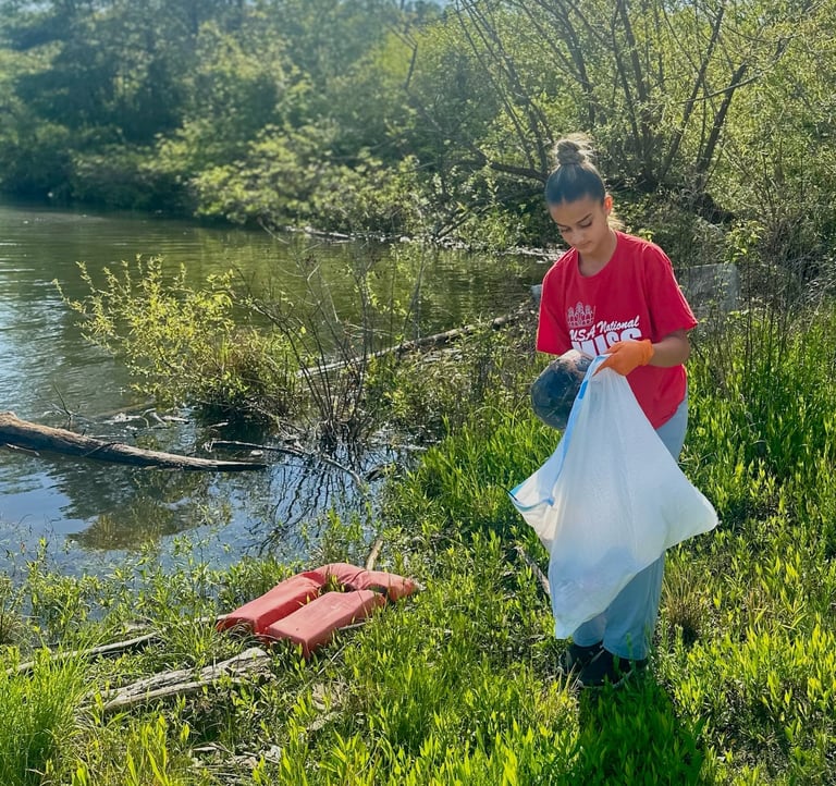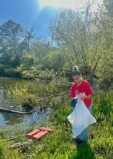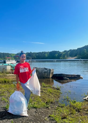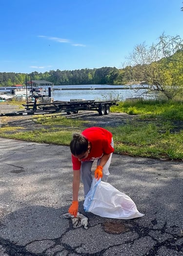 Collecting Trash at the Lake